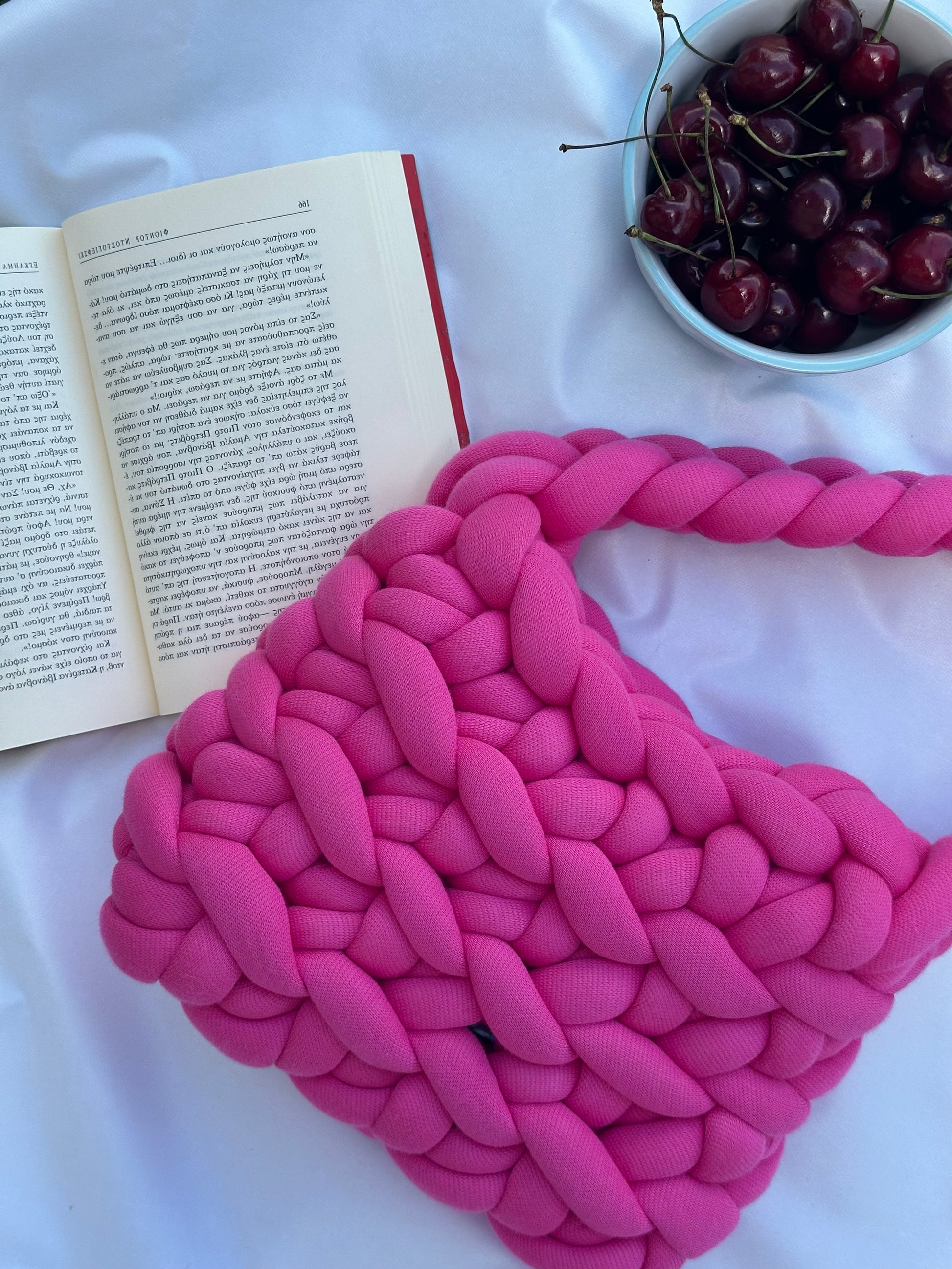 Χειροποίητη πλεκτή τσάντα σε ένα εντυπωσιακό φουξ χρώμα. Σφιχτή πλέξη από 60% βαμβακερό νήμα και 40% εσωτερική γέμιση πολυεστέρα. Εσωτερικός χώρος κατάλληλος για τα απαραίτητα προσωπικά αντικείμενα, φοριέται στον ώμο ή στο χέρι, ενώ μπορεί να προσαρμοστεί και χιαστί, κατόπιν παραγγελίας.