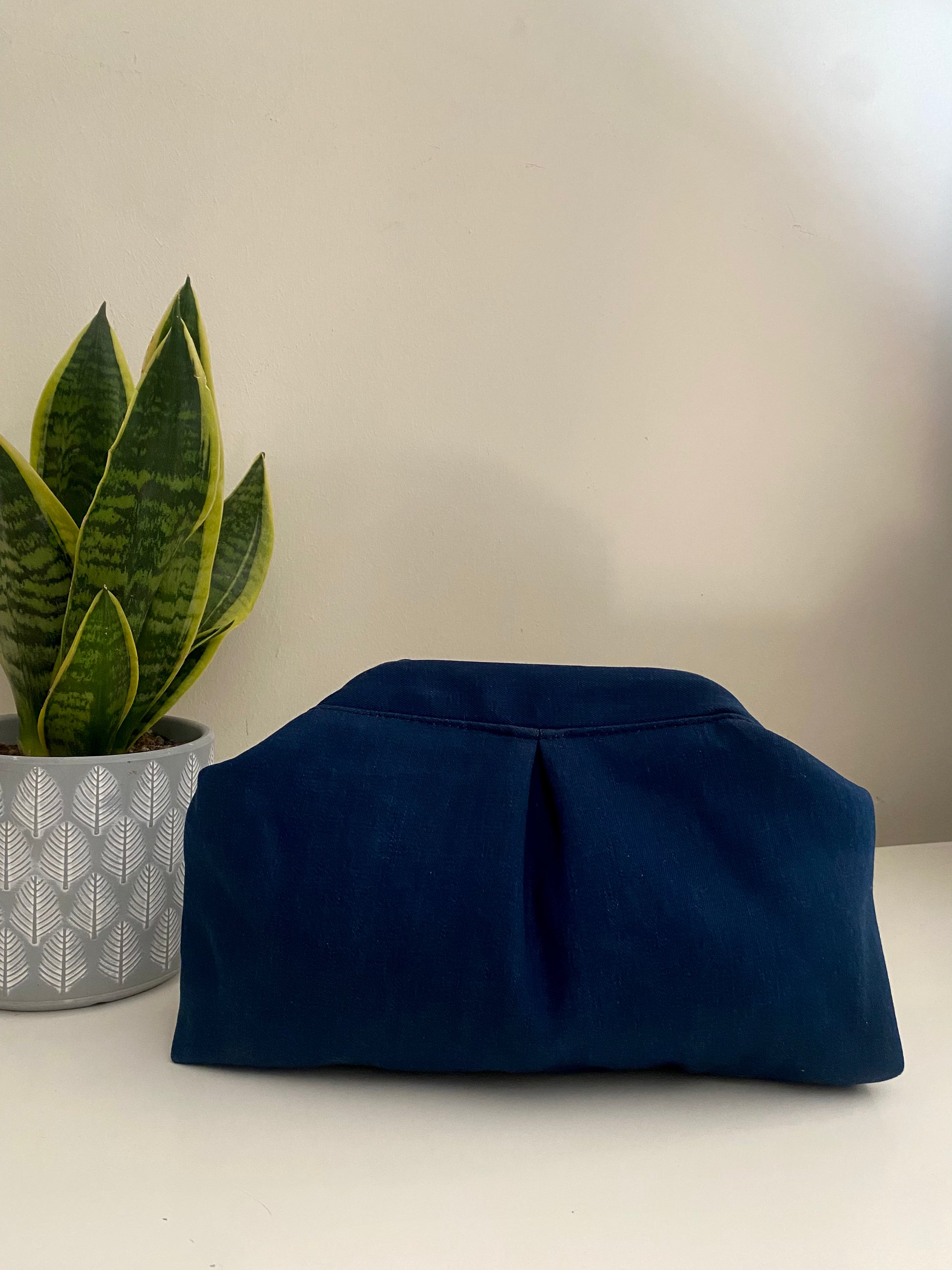 Χειροποίητη denim τσάντα clutch σε μέγεθος small. Διαχρονικό denim σταθερό ύφασμα με μπλε-λευκή ριγέ εσωτερική φόδρα. Η απόλυτη τάση για τη φετινή σεζόν, κατάλληλη για όλες τις ώρες, παρέχοντας χωρητικότητα για τα προσωπικά σας αντικείμενα.