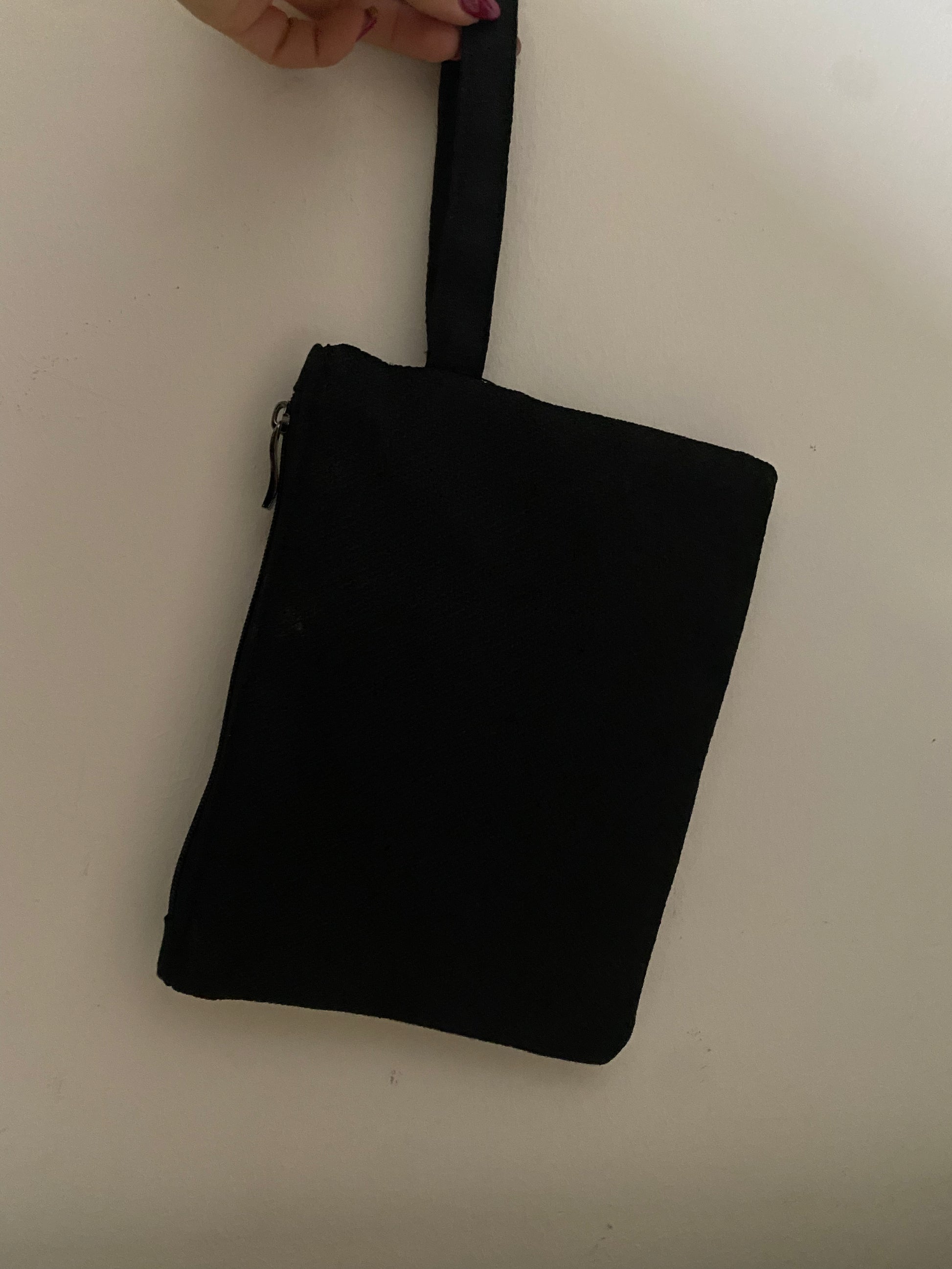 Χειροποίητο τσαντάκι χειρός σε σταθερό ύφασμα υψηλής ποιότητας. Leopard print ασπρόμαυρο με βάση το μαύρο χρώμα. Από την μία πλευρά και μαύρο μονόχρωμο από την άλλη, ώστε να το φοράς όπως σε εξυπηρετεί. Εσωτερική φόδρα και φερμουάρ, κατασκευασμένο να χωράει όλα τα προσωπικά σου αντικείμενα.